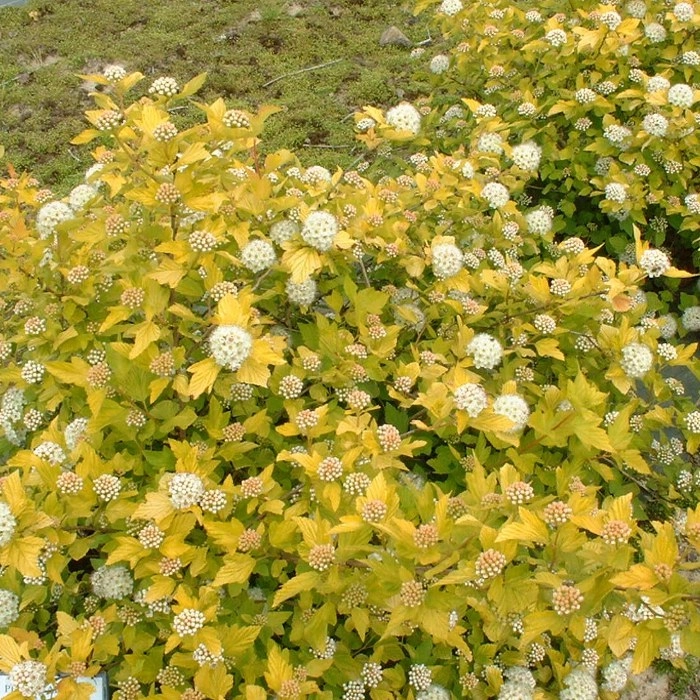 Кустарник с золотистой листвой высотой до 1,5 -2 м. Равномерно облиствен, благодаря чему выглядит пышно и красиво сверху донизу. Цветы бело-розовые, собраны в многочисленные щитки. Осенью приобретает бронзовый оттенок. Зимостойкость, неприхотливость, устойчивость к вредителям и заболеваниям. Место для пузыреплодника может быть и солнечным, и полутенистым. Однако следует учитывать: чем меньше света, тем менее яркая листва. Поэтому полутень должна быть легкой и ажурной. Растение не требовательно к составу почвы и растет где угодно, но предпочитает рыхлые кислые суглинки с реакцией pH 4.5-5.0.
