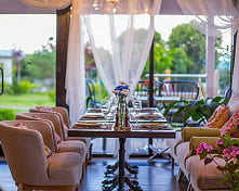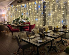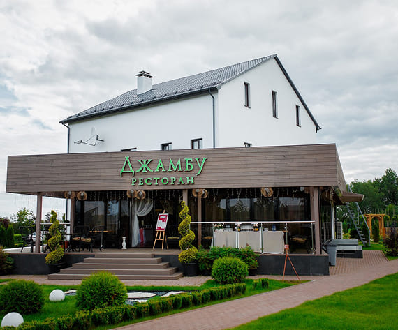 Уютное загородное кафе «Джамбу» с философской историей названия и атмосферой полного погружения в природу: панорамные окна, летняя веранда в окружении сада и интерьер с элементами ручной работы. Идеальное пространство для романтических встреч, семейных обедов и торжественных мероприятий на фоне живописного ландшафта садового центра.