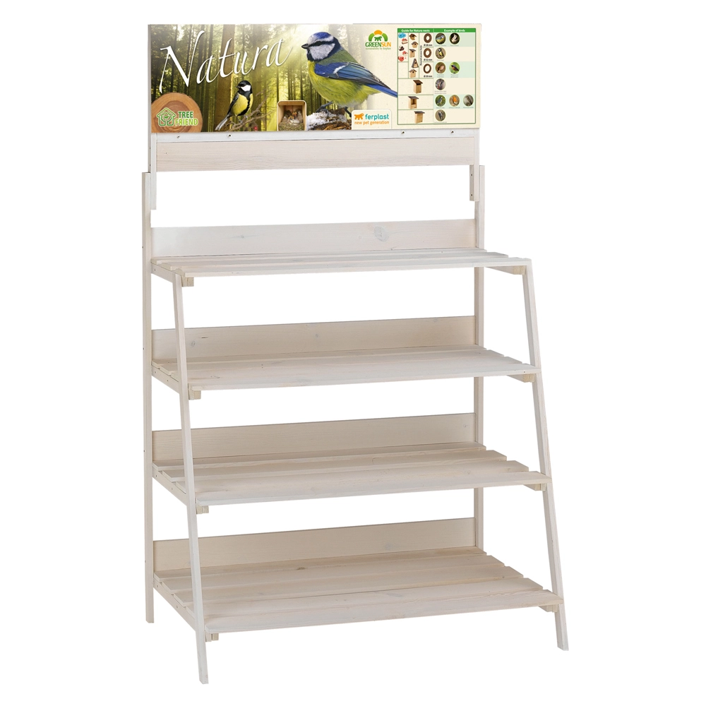 Стильное торговое оборудование для размещения домиков Natura. Выполнен из натурального дерева. Конструкция устойчивая и обеспечивает отличную визуализацию товара.