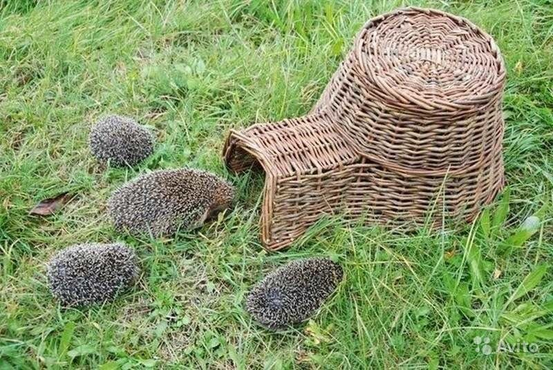 Если хотите иметь рядом лесных соседей, то вы непременно должны приобрести комфортабельные апартаменты для большой и шумной семьи колючего обитателя леса — ежа. Материал: лоза.