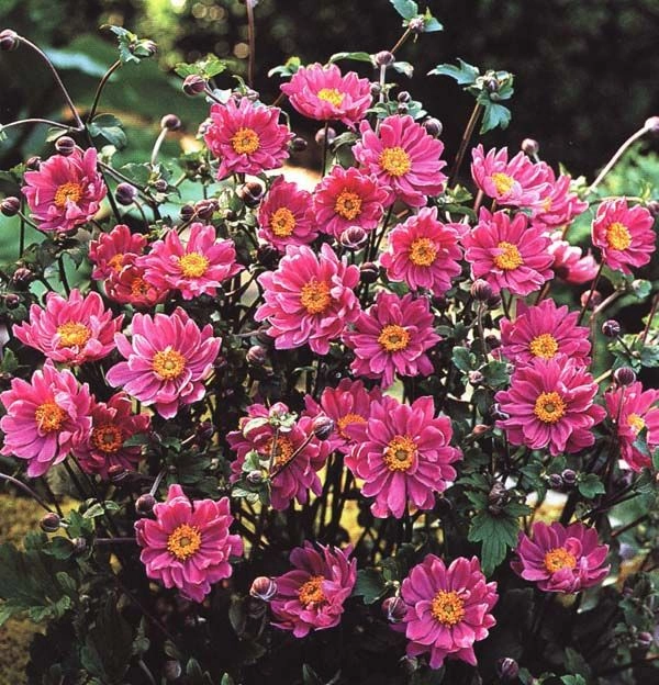 Высота растения 70 см. Цветки темно-розовые, махровые. Время цветения: август - сентябрь. Предпочитает полутень.
