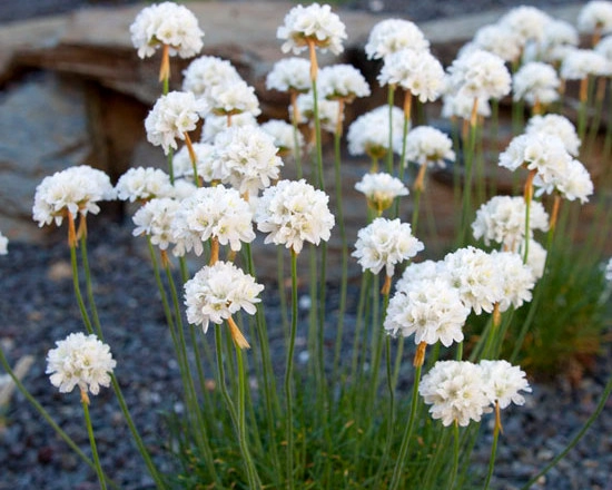 Армерия — многолетнее растение, образующее пышный подушковидный кустик, достигающий в высоту 15-20 см и в диаметре около 15 см. Листья у него узкие, линейные, плоские и тупые, с сине-зеленым оттенком. Цветки белые, собраны в головчатые соцветия, которые укрыты пленчатыми прицветниками. Цветоносы, достигающие в высоту до 20 см, покрыты лохматым опушением. Цветет армерия с мая примерно 70 дней, а иногда и повторно осенью. Для посадки армерии выбирают солнечные места. Это засухоустойчивое растение, способное зимовать без укрытия. Предпочитает легкую супесчаную почву с умеренной влажностью, желательно с кислой реакцией. Не переносит известь. После цветения соцветия обрезают. Армерия идеально подходит для оформления скальных садиков, бордюров, рабаток и групповых посадок.