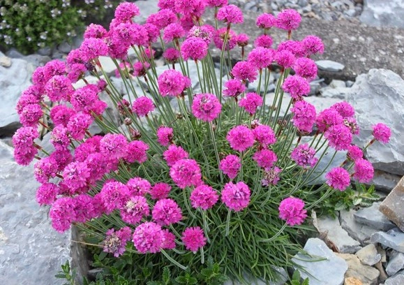 Многолетнее подушковидное растение, достигающее 15-20 см в высоту и 15 см в поперечнике. Его узкие, линейные, плоские, тупые сине-зеленые листья образуют плотный ковер. Цветки армерии имеют лилово-розовый оттенок и собраны в головчатые соцветия, окруженные пленчатыми прицветниками. Цветоносы, достигающие 20 см в высоту, опушены. Цветение длится около 70 дней, начиная с мая, а иногда повторяется осенью. Армерия предпочитает солнечные места и устойчива к засухе. Ей подходит легкая супесчаная, сыроватая почва с кислой реакцией. Известь не переносит. Это растение станет прекрасным украшением для скальных садиков, бордюров, рабаток и групп.