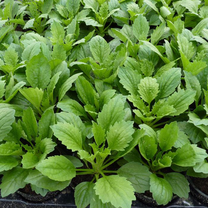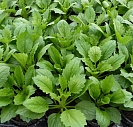Листья расположены в очередном порядке, нижние на черешках, широкоовальные или овально-ромбические, по краю неравно-крупнозубчатые, пильчатые или городчатые; верхние — сидячие.