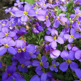 Образует низкие густые, вечнозеленые заросли. Цветет в мае фиолетовыми, синими или розовыми цветами, которые покрывают растение почти полностью. Требует открытого солнечного местоположения. Высота до 15см. Густой почвопокровник. Цветение конец мая -июнь. Предпочитает хорошо дренированные почвы и солнечные места.