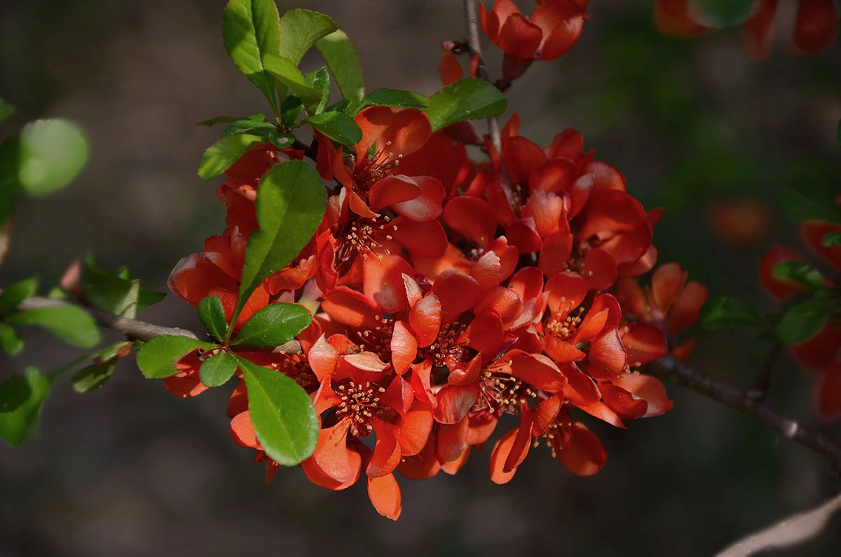 | Цветение | Цветет в марте - апреле, простыми оранжевыми цветами до 3 см в диаметре. Бутоны насышено-темного розового цвета. |