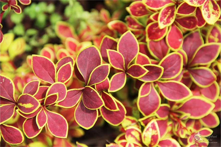 | Листва | Листья бордовые с тонким желтым кантом. |