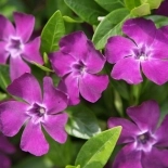 Почвопокровное вечнозеленое растение высотой около 15 см. Листья овальные темно-зеленые, глянцевые, цветение наступает в мае цветками фиолетовых оттенков диаметром 2-3см.