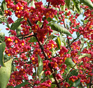 Имеет декоративного вида плоды и красивую осеннюю окраску. На фоне еще зеленых листьев гирлянды ярких плодов смотрятся удивительно контрастно. Издали кажется, что растение цветет.