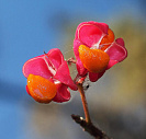 Плод бересклета - это сухая, кожистая, обычно четырехраздельная коробочка красно-оранжевых тонов.