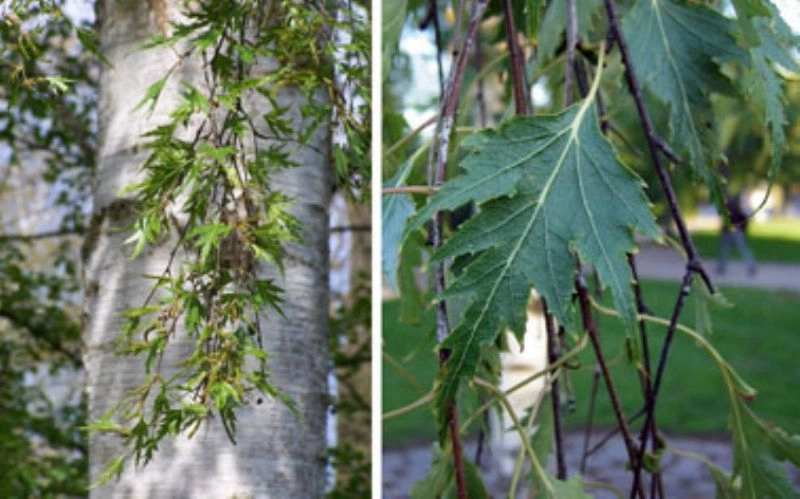 Дерево с узкой ажурной кроной и прямым стволом, основные ветви растут под острым углом, боковые ветви плакучие.