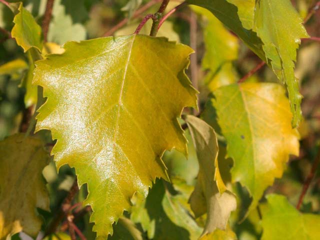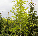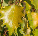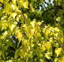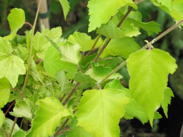 Мощная широкая. Листья треугольные, золотисто-желтые, сохраняют свой цвет в течение всего перио-да и не подгорают от яркого солнца.  Цветет в апреле - мае, плодоносит в июле - августе.
