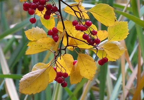 Цветение: Цветки белые, до 2 см в диаметре, собраны в 8-10-цветковые соцветия. Плоды красные, яблоковидные, кисло-сладкие на вкус, очень полезные