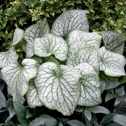 Нежные голубые цветочки похожи на незабудки, появляются весной. Высота растения 50см, ширина 70см. Она неприхотлива, устойчива к болезням и вредителям. Растение крайне неприхотливо: оно выдерживает морозы до -30 °С и может прожить в одном и том же месте более десяти лет. Цветет бруннера в мае мелкими голубыми цветочками , похожими на незабудку.
