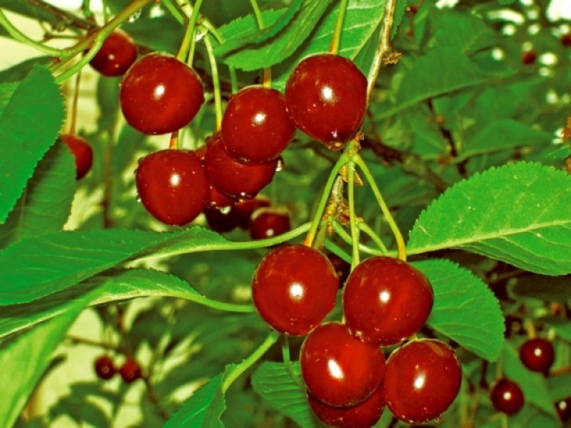 Плоды крупные (4,5-5,0) округлой сердцевидной формы. Окраска плодов темно-бордовая, почти черная. Краска мякоти светло красная. Сок темной окраски. Кожица плода плотная, мякоть хрящеватая. Косточка крупная. Вкус плодов кисло-сладкий, дегустационная оценка 4,5 балла. Биохимический состав плодов: содержание сухих веществ 16,14%, сахаров 12,78%, кислоты 0,83%, аскорбиновой кислоты 6,6 мг/100г.