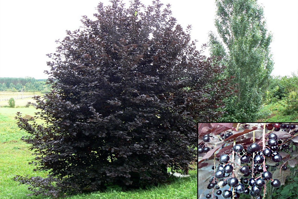 Листья начинают краснеть в середине лета. Постепенно окраска листвы становится сливово-чернильной (обычно окраска меняется за 2-3 недели) и остается такой всю осень. Цветение в мае. Цветки ароматные, белые, объединены в соцветия.