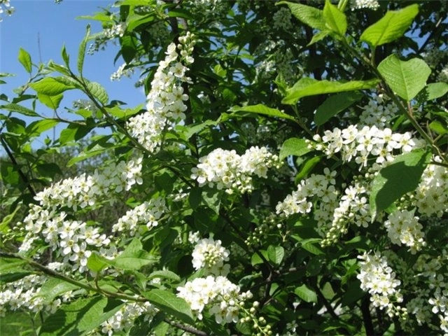 Кора матовая, чёрно-серая. Молодые ветви оливковые или вишнёво-красные. Листья простые, очерёдные, зеленого цвета, осенью - зеленовато-желтая. Цветки белые, очень душистые. Плод — чёрная костянка. Цветёт в мае.