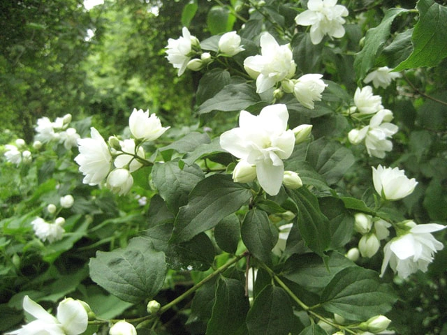 Кустарник до 2,3 высотой, цветки полумахровые, до 5 см, белые с зеленоватым оттенком, с очень слабым, но приятным ароматом, цветет до 20 дней. Перед высадкой нужно определить место для чубушника, нужно, чтобы оно хорошо освещалось. Впрочем, тень тоже не противопоказана, кустарник будет расти и без солнца, но вот обильного цветения ждать не стоит в этом случае. Без большого количества солнечных лучей растение уйдет в рост веток. Что касается грунта, то этот вид не особенно прихотлив, но на плодородном растет лучше. А также следует позаботиться о дренажном слое, иначе вода будет застаиваться. Сорт относится к морозоустойчивым, но молодые кусты лучше укрыть от морозов.