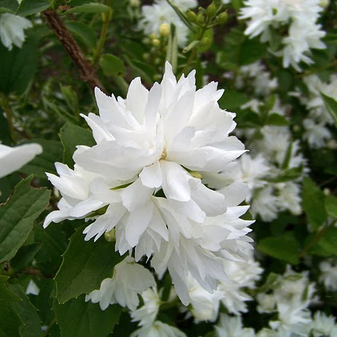 Высотой 2-3 м. Очень ароматные белые цветы, цветение продолжительное, эффектное. Засухоустойчив, хорошо переносит городские условия. Зона зимостойкости: зона 4. Морозоустойчива. Требования к освещенности/почве: Солнце, полутень. Засухоустойчив. Чубушники предпочитают плодородные почвы: листовая земля, перегной, песок (3:2:1). Дренаж щебень и песок слоем 15 см.