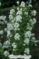 Самый ранний, зацветающий после сорта 'Снежная лавина'. Куст компактный, средней высоты с темно-зелеными листьями, на фоне которых прекрасно смотрятся белоснежные соцветия; цветки отличаются чисто-белым тоном, махровостью и изящными длинными завитыми лепестками. Цветочные кисти не длиннее 7-8 см с очень плотно расположенными цветками. Среди главных достоинств чубушника Комсомолец садоводы отмечают высокий показатель засухоустойчивости, растение неплохо переносит зимовку (от -34 до -29 градусов). Стоит учесть некоторые факторы при выборе посадочного места: открытость участка, расстояние от крупных деревьев (нужно соблюдать некую отдаленность, не допускается плотная посадка), плодородная и рыхлая почва (со слабой или слабощелочной кислотностью).