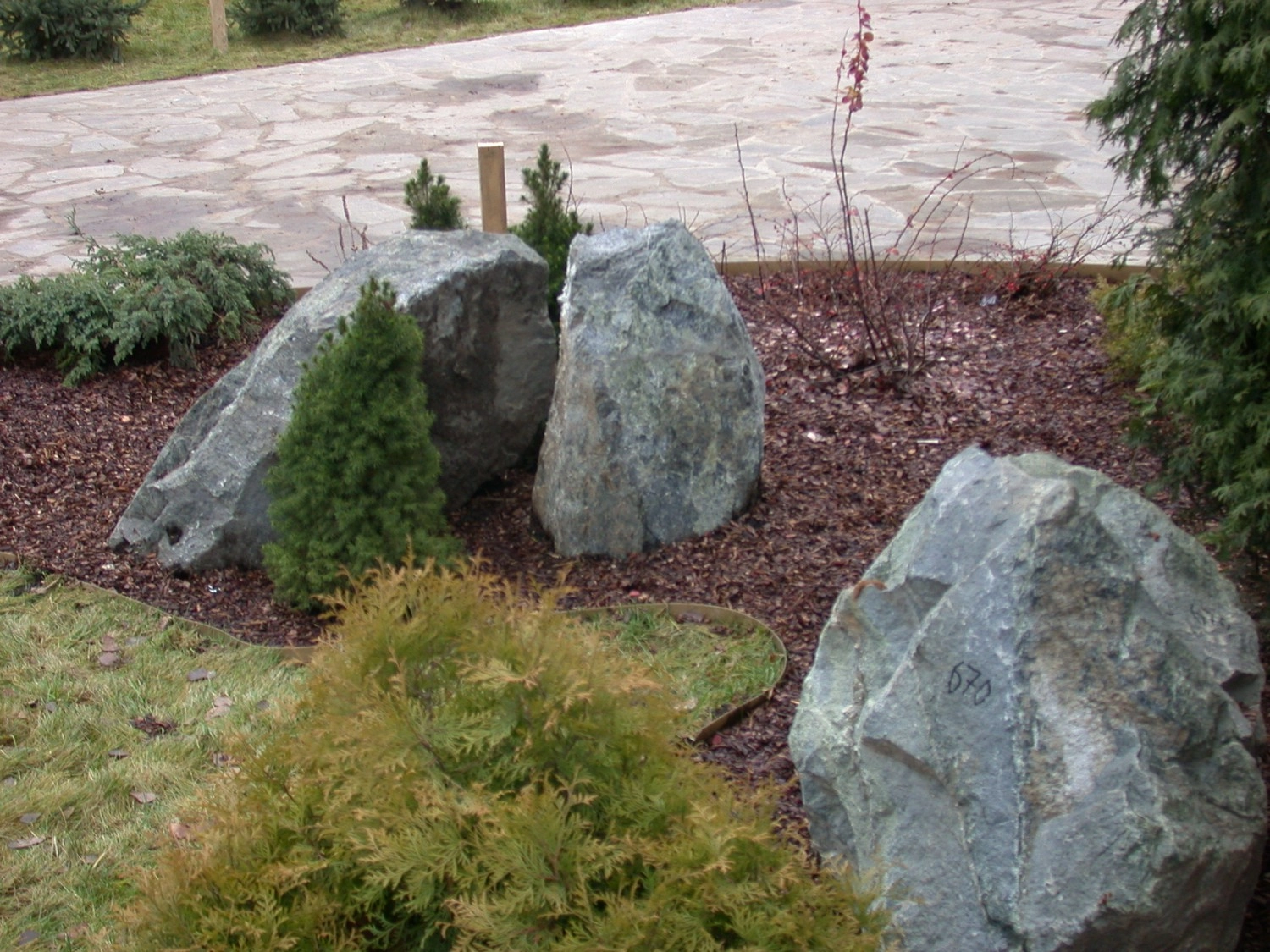 Горная порода метаморфического происхождения. Камень змеевик добывают в Ставропольском Крае. Благодаря своей разнообразной форме, спокойному цвету с множеством оттенков не только основного тона, змеевик может применяться в любой области ландшафтного дизайна. Он хорош как основной камень и как дополнительный, оттеняющий достоинства других камней. Цвет - змеевик темно-зеленый, изумрудного оттенка с фиолетовыми и рыжими подпалинами. Форма - объемная, рельефная, с четкими гранями и ступенями, с крупными изломами и впадинами по граням. Фактура - шероховатая, волнисто-ступенчатая, иногда с лишайником и мхом.