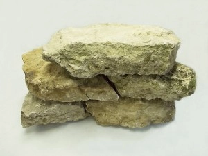 Блочный известняк средней прочности и морозостойкости. Уникальный камень, который за счет своей формы и цвета позволяет создавать композиции, имитирующие развалины старинных сооружений (или руины). Цвет -светло-серый с желто-бежевым отливом и пятнами более темных тонов. Форма - камень почти строгих геометрических форм с большим разнообразием параметров. Фактура - грубая, шероховатая, ступенчатая.