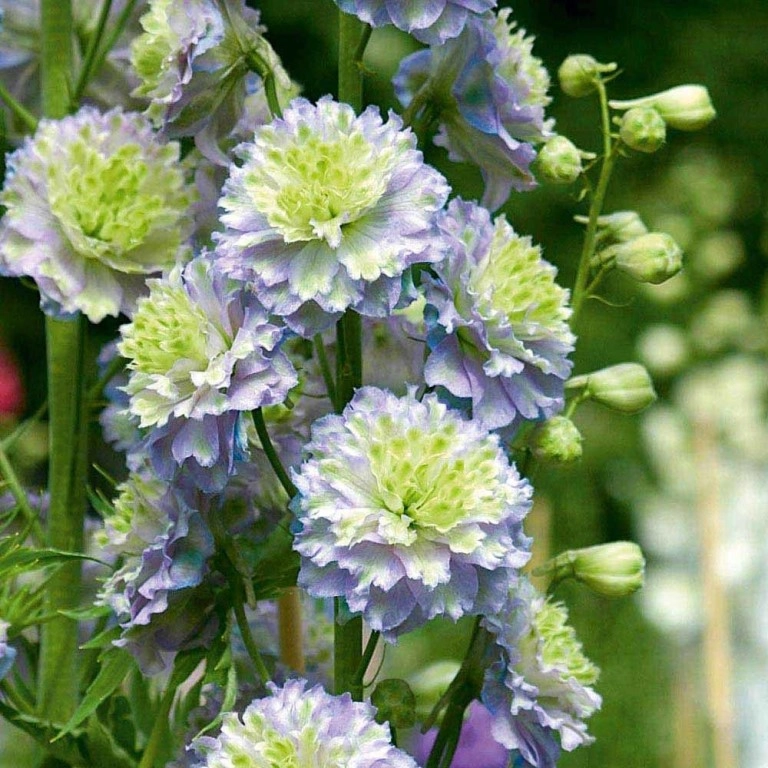 Цветок махровый светло-лилового цвета, с голубой дымкой и светло-зеленым центром.