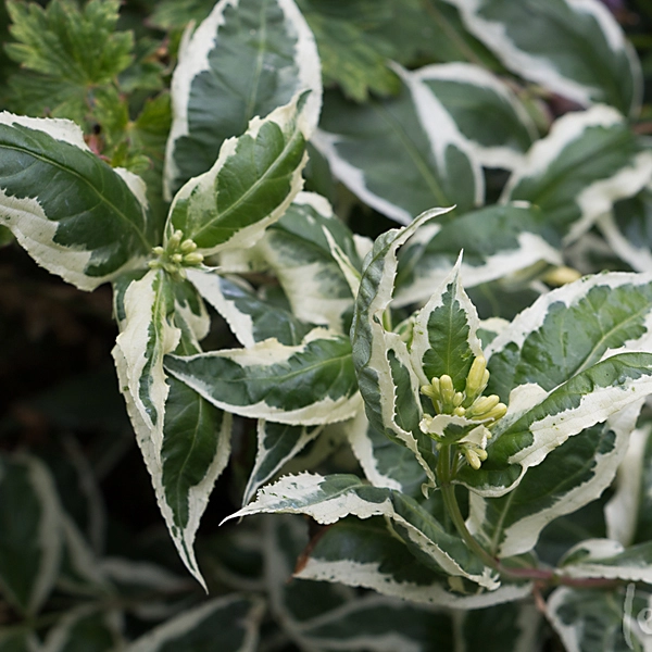 Невысокий, до 1,5 м высотой c небольшими, сернисто-желтыми цветками, в 3-4-цветковых конечных или пазушных полузонтиках. Продолжительность цветения 30-40 дней. Образует корневые отпрыски. Ветви расположены каскадом. Побеги четырёхгранные, красноватые. Листья яйцевидно-ланцетные, крупные, тёмно-зелёные с неровной белой или кремовой каймой. Цветки трубчатые, жёлтые, в густых соцветиях на концах ветвей и в пазухах верхних листьев. Аромат лёгкий. Цветение в июне. Место солнечное или полутенистое. Почва дренированная. Кустарник удивительно неприхотлив, растет практически на любой почве, и даже временная засуха ему по зубам. Диервилла обладает высокой зимостойкостью - листву не сбрасывает до довольно сильных морозов. Однако саженцы первые несколько лет всё же желательно укрывать на зиму