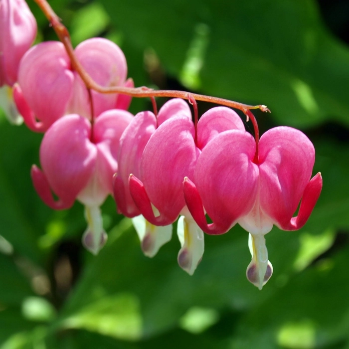 | Цветение | Цветет в мае-июне. Цветки розовые, в виде сердечка, с загнутыми лепестками до 3 см в поперечнике, постепенно распускаются снизу вверх. |