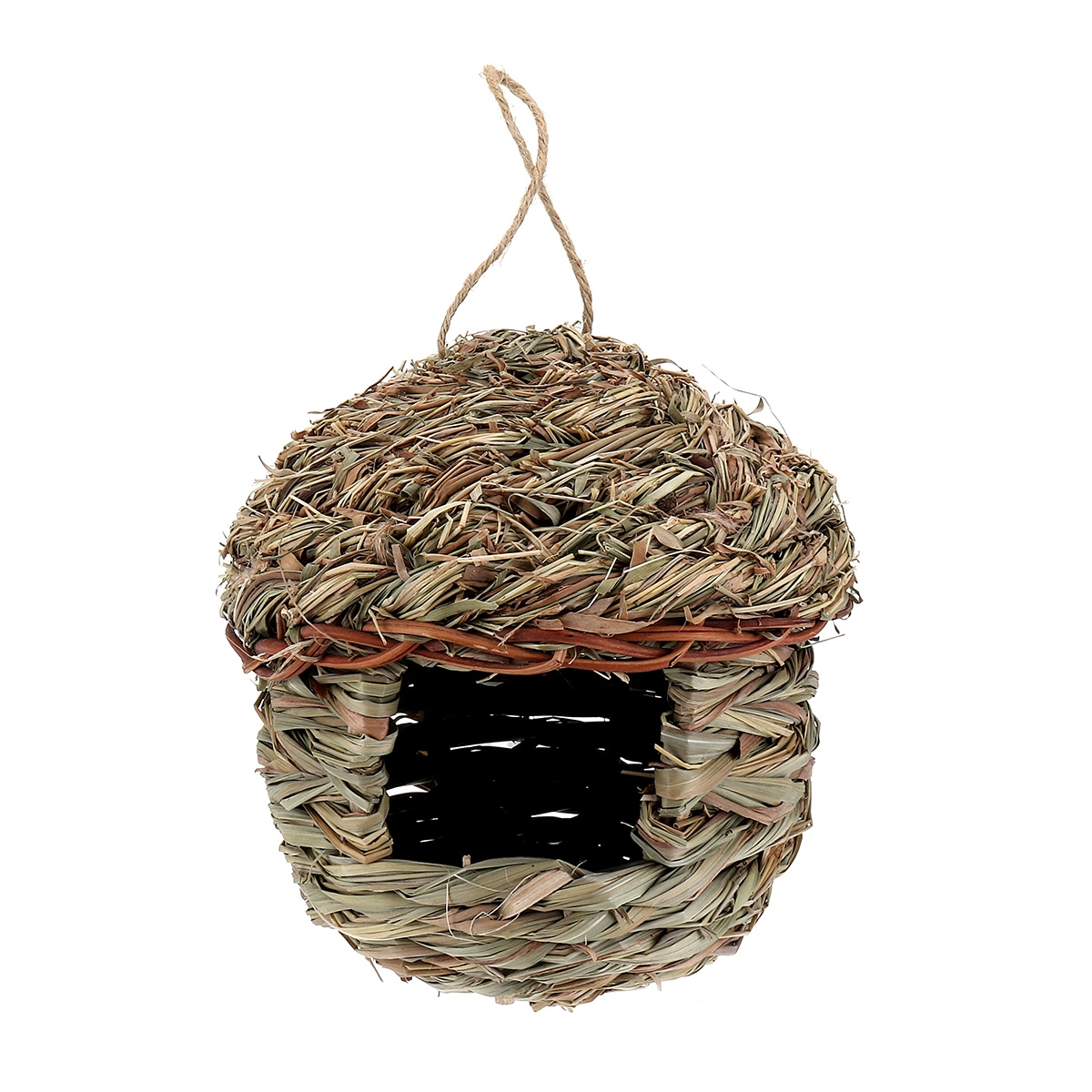Домик изготовлен из соломы. В этой стильной жилплощади обязательно поселятся какие-нибудь маленькие дикие птички, которые будут радовать вас своим пением и чириканьем.