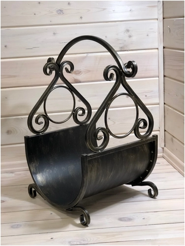 Компактная кованая дровница для хранения поленьев, предназначена для домашнего использования, как дополнительный функциональный аксессуар к камину. Отлично дополнит интерьер помещения, и позволит поддерживать порядок.