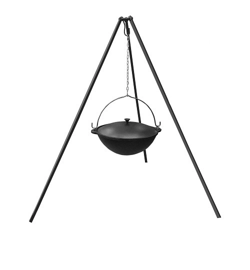 Тренога костровая телескопическая имеет три выдвижные ножки надежно фиксируемые кнопками-фиксаторами.