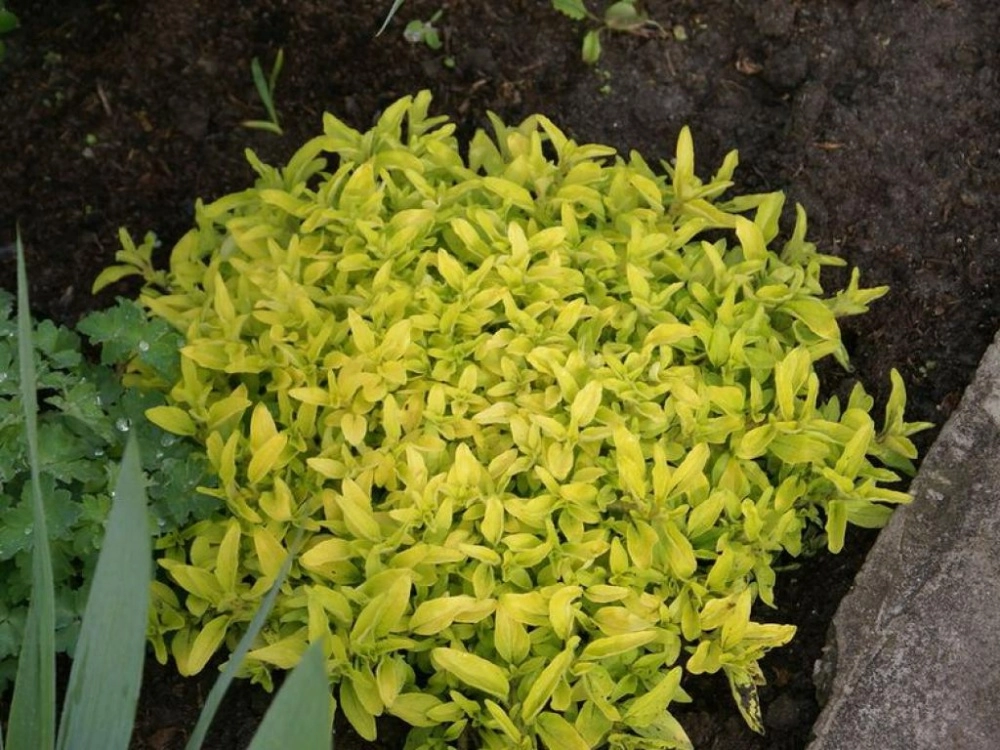 Многолетнее растение, имеет красивые и очень ароматные цветы, как пряность известна под названием – орегано, достигает в высоту 25 см. Молодые листья ярко-желтые. Предпочитает солнечное местоположение и сухую, известковую или нейтральную почву.