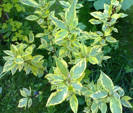 Высота 3 м. Кора кораллово-красная. Листья с широким светло-зеленым окаймлением, осенью желтые, оранжево-красные. Благодаря высокой морозостойкости кустарник может с успехом выращиваться на территориях с прохладными климатическими условиями. Растение нетребовательно к почвам. Его можно высаживать на каменистой, рыхлой, глинистой почве. Однако стоит обратить внимание на кислотность грунта. Предпочтение стоит отдавать почвам с нейтральной реакцией. Для посадки неплохо отдавать предпочтение хорошо освещенным участкам, но при этом стоит избегать попадания прямых солнечных лучей. Поэтому наиболее часто кустарник сажают на полутеневых местах.