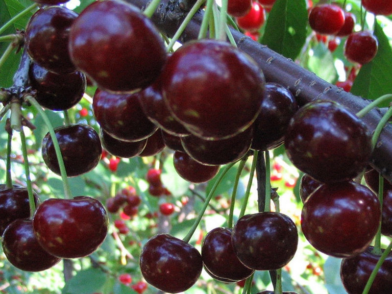 | Плоды | Плоды очень крупные, массой 7 - 8 г, круглые, темно-красные, умеренно плотные. Мякоть нежная, темно-красная, отличного вкуса. |