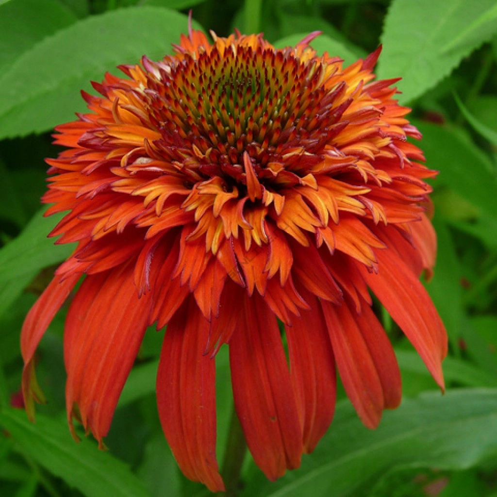 Высота 70 - 80 см. Красно-оранжевая махровая эхинацея. Глубокий цвет, который не выгорает в течение цветения. Обильное яркое цветение. Цветки ароматные, диаметром 8 см. Цветет с июня по август. Светолюбивое, к почве не требовательна. Зона морозостойкости (зимостойкость) 4 (до -35С).