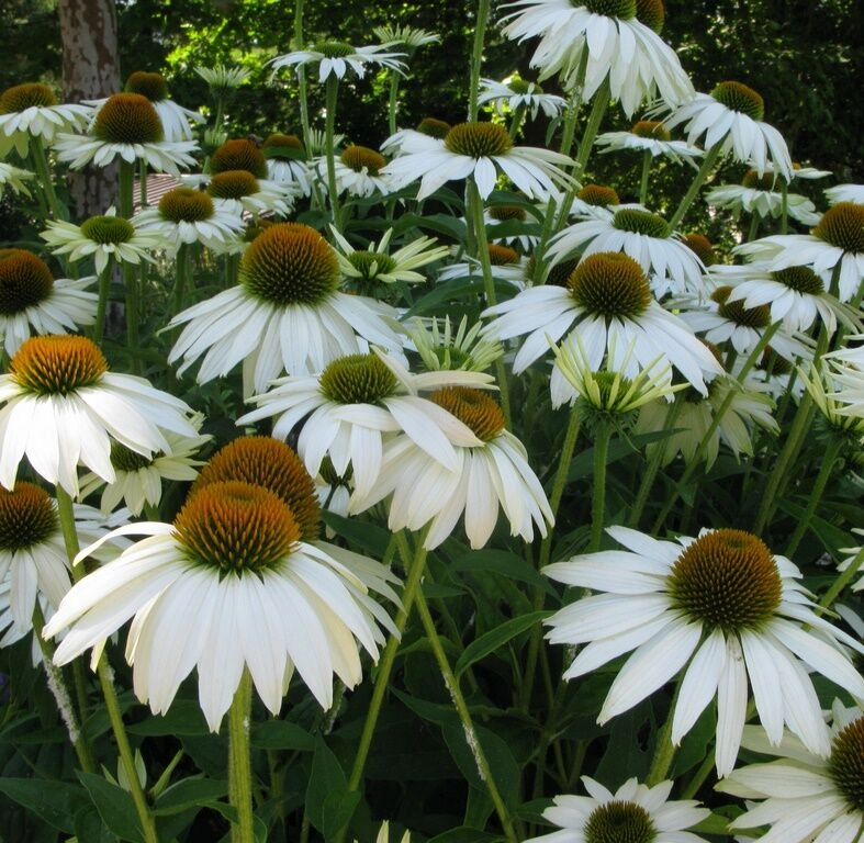 Высота 100-120 см. Крупные соцветия-корзинки (до 12 см в диаметре) с длинными цветоносами располагаются на верхушке стебля. Краевые язычковые цветки в соцветиях кремово-белые. Цветет в августе - сентябре.