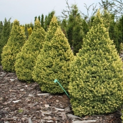 Высота 1,5-2 м, диаметр, 1м. Растет очень медленно. В молодом возрасте побеги развиваются неравномерно: нижние интенсивнее, а верхние как бы отстают от них в развитии. Годовой прирост: по 5-6 см. Форма кроны: широко конусовидная или пирамидальная. Размер в 10 лет : высота до 1 м, при диаметре 0,6 м. Окраска хвои, зеленая. Цвет молодого прироста, кремово-желтый или светло-зеленый. Корневая система, поверхностная. Место посадки, солнце, полутень. Хорошо растёт на суглинках, супесчаных почвах. Кислотность почвы: кислая или слабокислая. Зона морозостойкости (USDA) 3 (от -40° до -34°). Подходит для компактных посадок. Ей хорошо украшать альпинарии вместе с травянистыми и другими миниатюрными хвойными растениями, каменистые сады. Хорошо будет смотреться и как солитер в садах вересков.