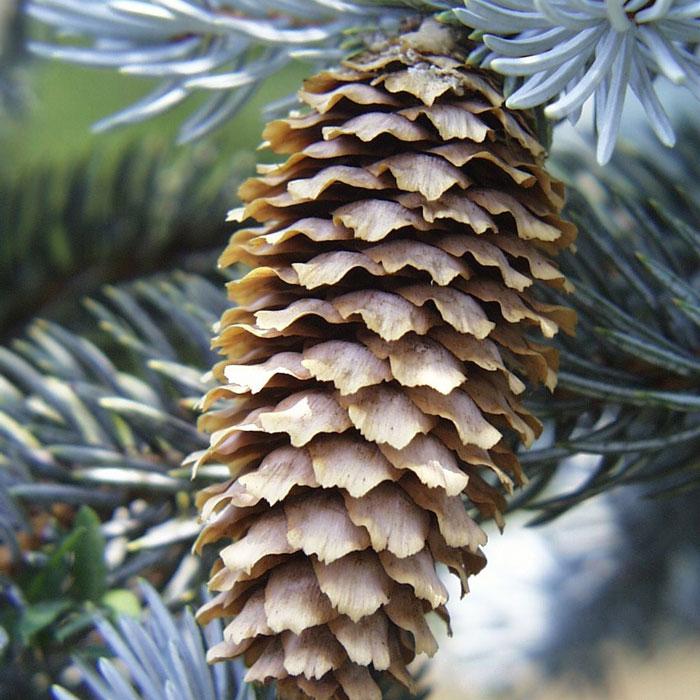 К достоинствам относится долгий срок жизни, до 800 лет. Во взрослом состоянии высота дерева достигает 25-35 м. Ствол мощный, изящный, шириной до 1,5 м. Иголки острые, плотные, покрытые сизым налетом, длиной до 4 см. Цвет хвои зависит от количества солнечного света и бывает темно-зеленым, серо-голубым или серебристым.