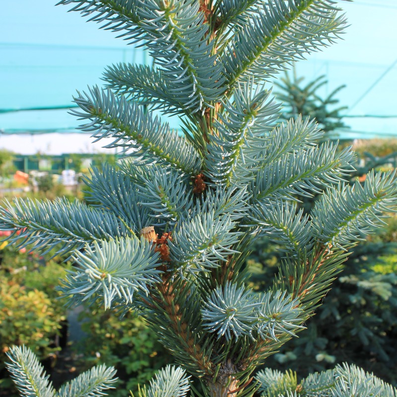 Хвоя сизоватая или голубая, плотная, колючая. Шишки цилиндрические.
