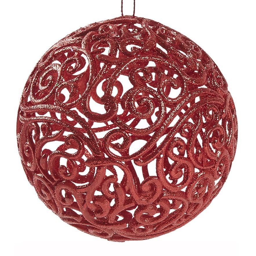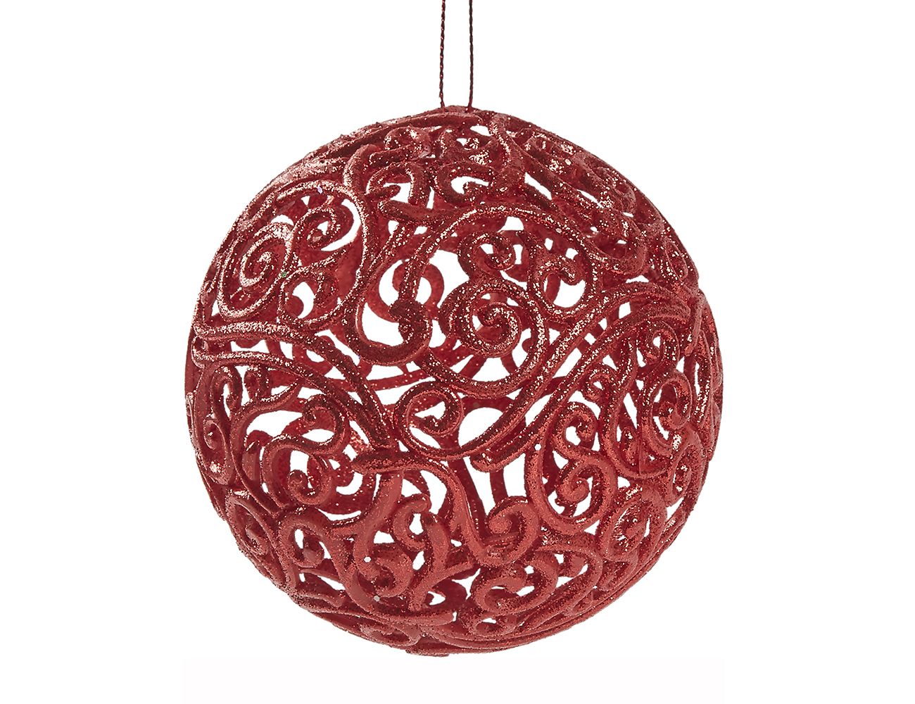 Шар ажурный СНЕЖНЫЕ ИСКОРКИ, красный с глиттером, 200 мм, Морозко