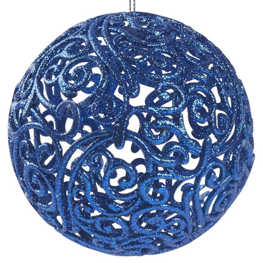 Шар ажурный СНЕЖНЫЕ ИСКОРКИ, синий с глиттером, 200 мм, Морозко