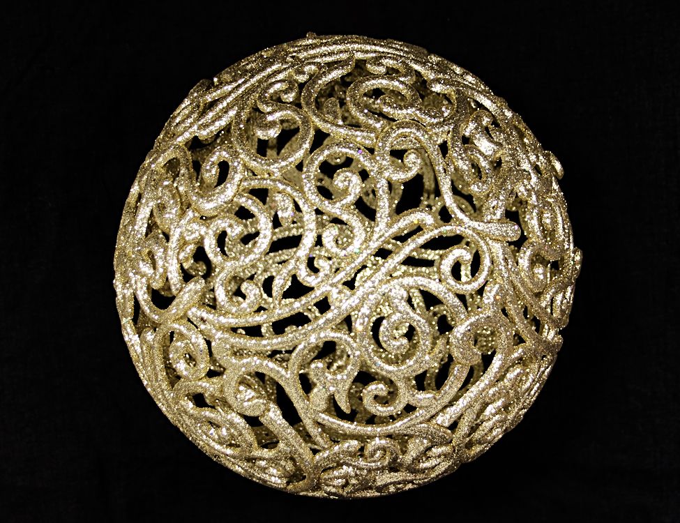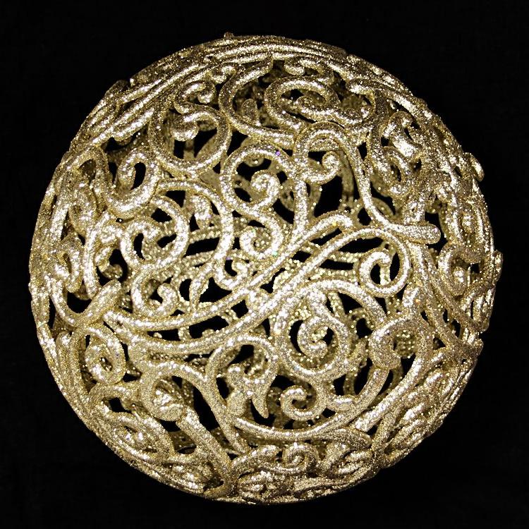 Шар ажурный СНЕЖНЫЕ ИСКОРКИ, золотой с глиттером, 200 мм, Морозко