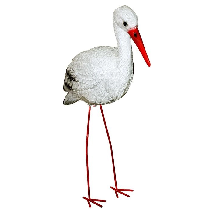 Фигурка аист для сада, подходит для оформления любого дачного и приусадебного участка. Фигура выполнена из качественного стеклопластика, имеет красивую и реалистичную покраску, которая устойчива к различным температурным режимам.