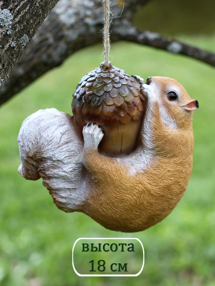 Подвесная Садовая фигура Белка с желудем изготовлена из полистоуна. Отлично впишется в интерьер любой дачи, сада, огорода, загородного дома. Садовая фигурка белки поможет вам дополнительно декорировать пространство. Белочка выполнена из искусственного камня полистоуна и окрашена устойчивой к осадкам и перепадам температур краской. Полистоун – это плотная непористая масса, устойчивая к растрескиванию, гниению, образованию плесени. Изготовленные из него вещи не впитывают влагу и запахи, поэтому просты в уходе. Такая фигура отлично впишется в Ваш интерьер в качестве декоративного элемента.