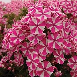 Флокс метельчатый Peppermint Twist (Пеперминт Твист). По белому полю лепестка широкая ярко-розовая полоса. Цветок колесовидной формы. Соцветие округло-коническое, большое, плотное. Куст полураскидистый. Стебли прочные. Устойчивый к грибковым заболеваниям сорт.