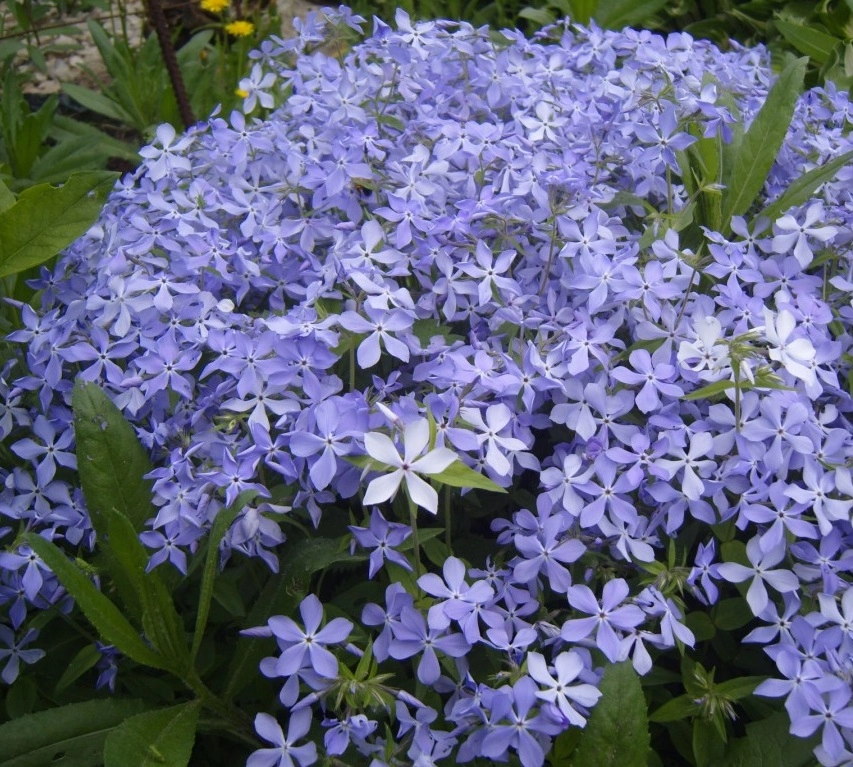 Флокс растопыренный – неприхотливый травянистый многолетник, образует нежные куртинки голубого цвета. Этот вид хорошо растет на солнце и в полутени. В сухую жаркую погоду растению требуются поливы. Высота растения 50 см. Пик их цветения приходится на начало июня.
