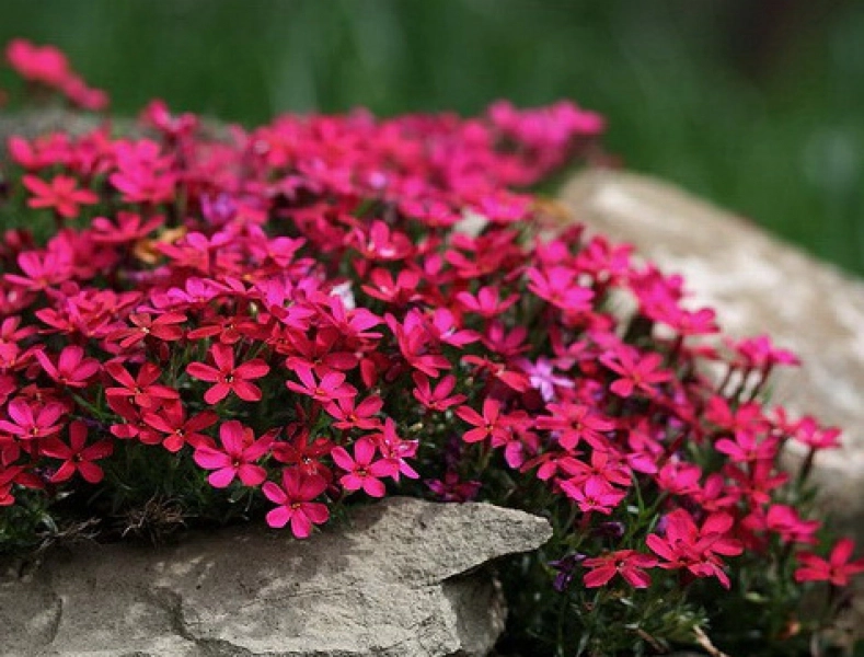 Идеальный почвопокровный многолетник для каменистых садиков, бордюров и подпорных стенок, образует густой «ковёр» высотой 10 см. Цветки многочисленные, тёмно-малиновые с пурпурным глазком, собраны в соцветия. Цветение обильное, в мае-июне. Декоративен до морозов, благодаря шиловидным листьям. Место солнечное. Почва бедная, хорошо дренированная, сухая. Зона 2 (до -40ºС).