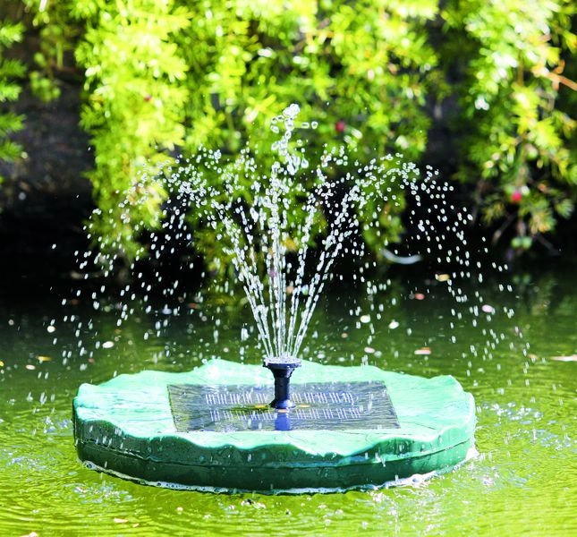 Плавающий фонтан на солнечных батареях – фонтан выполнен в виде плавающего блюдца, не требует электричества - плавающий фонтан работает от энергии Солнца, не нужно прокладывать кабель, простота использования, высокая производительность, незаменим при декоративном оформлении интерьера.
