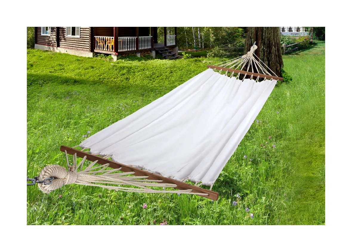 Подвесной гамак подходит для времяпровождения на свежем воздухе. Изготовлен из прочной ткани, благодаря чему устойчив к износу. Благодаря плотному плетению выдерживает нагрузку до 200 кг.